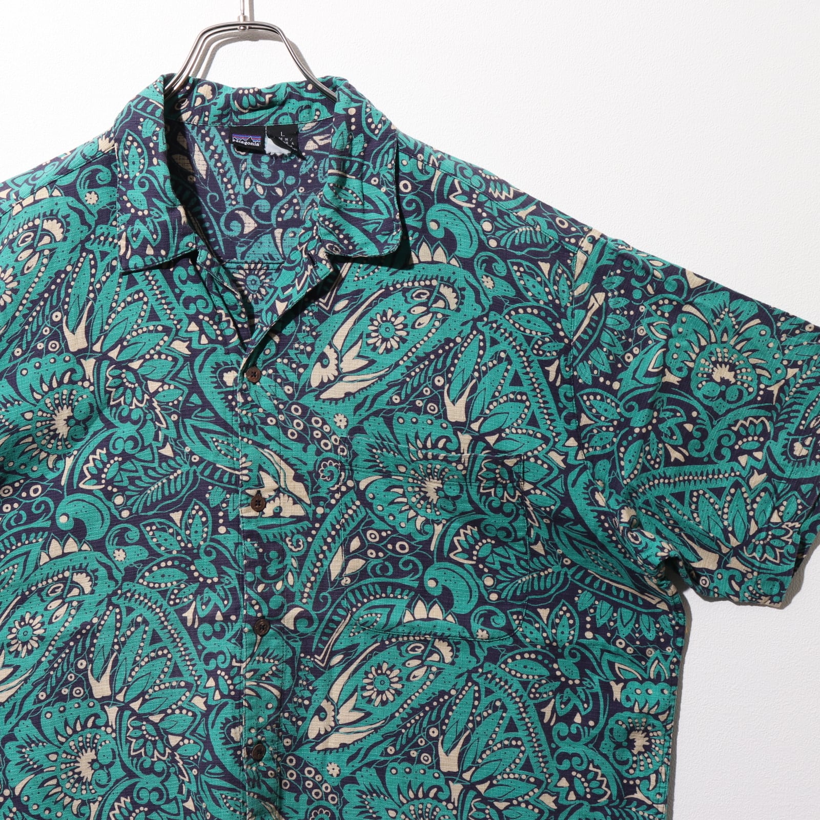 極美品 L 95年 草木柄 ブルー A/C Print Shirt Patagonia パタゴニア アロハ ACシャツ