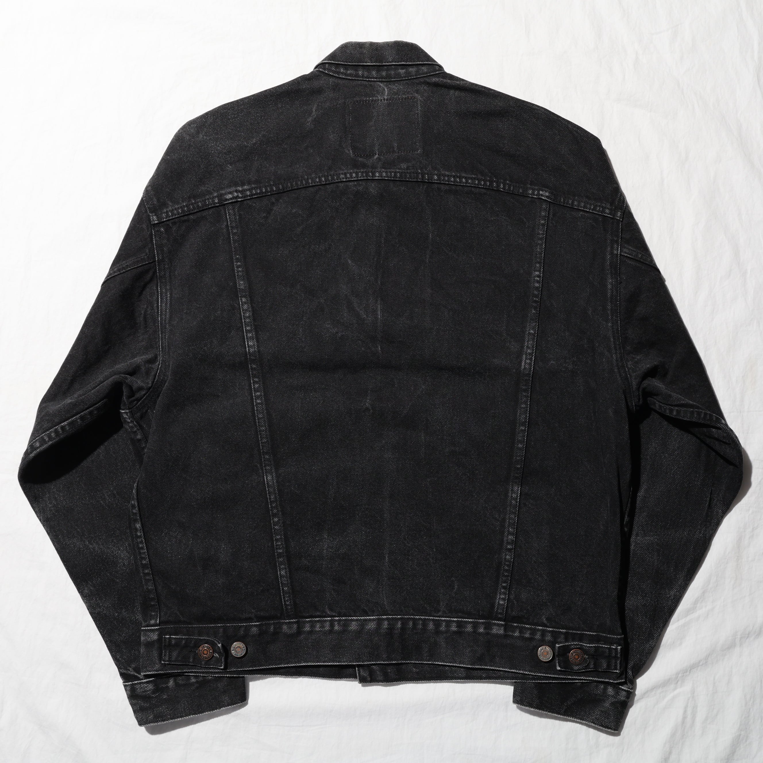 1980-2000年代にかけて製造されたサルファー染め(硫化染め)のブラックデニムジャケットです。