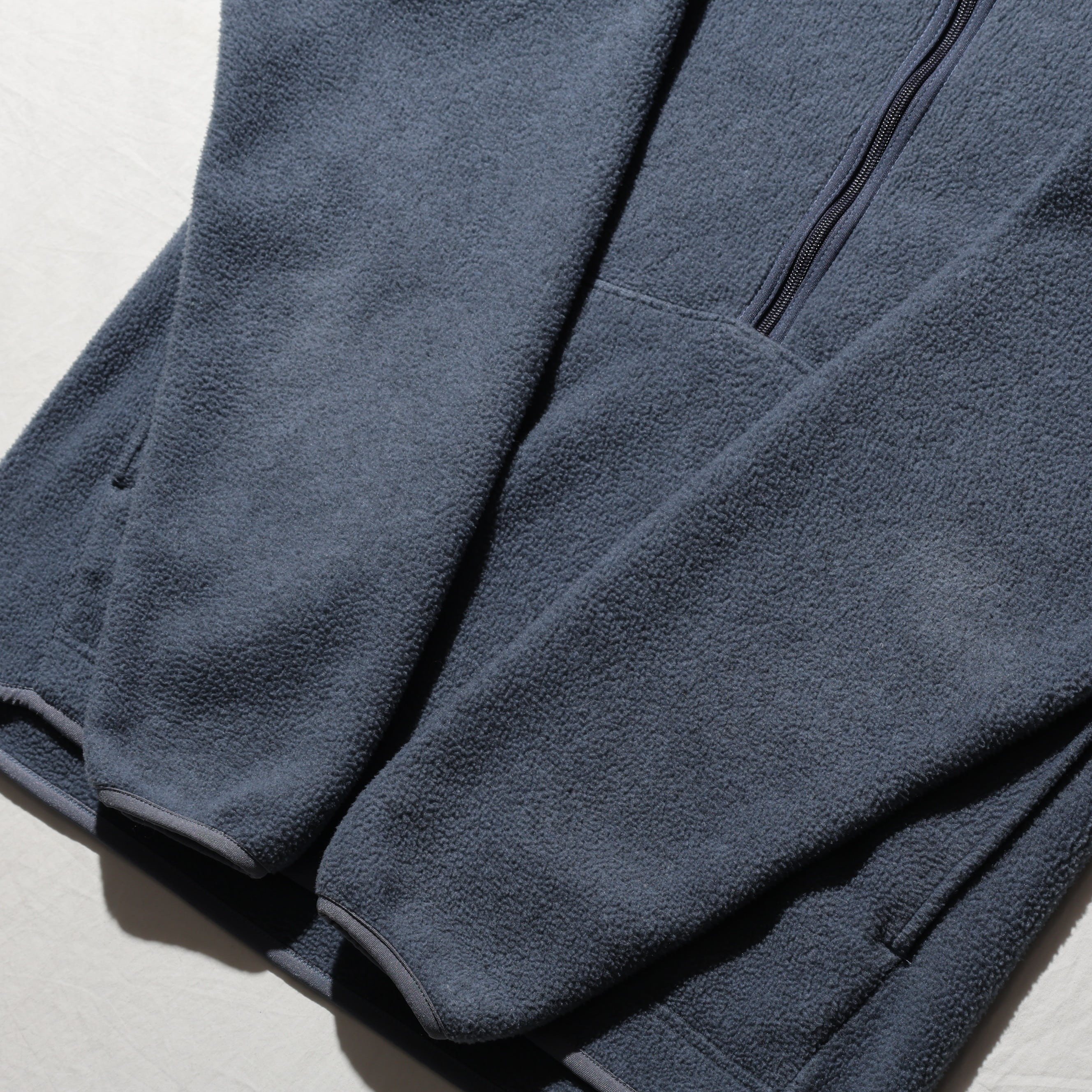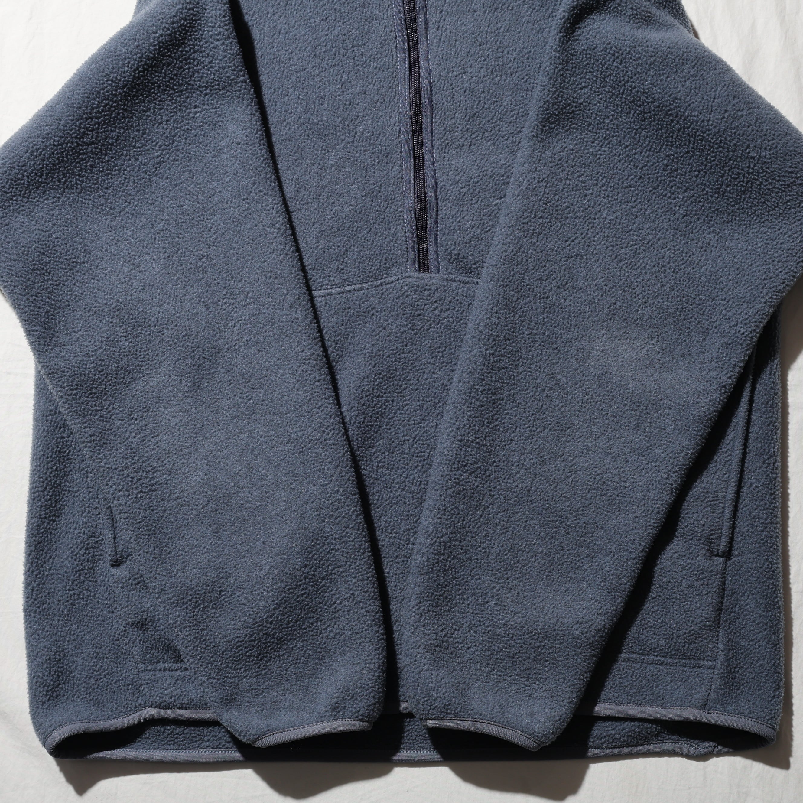 その名の通り、貫通したカンガルーポケットを備えたシンチラフリースです。Snap-Tと異なりハーフジップ仕様で、パイピングのカラーがアクセントとして効いています。