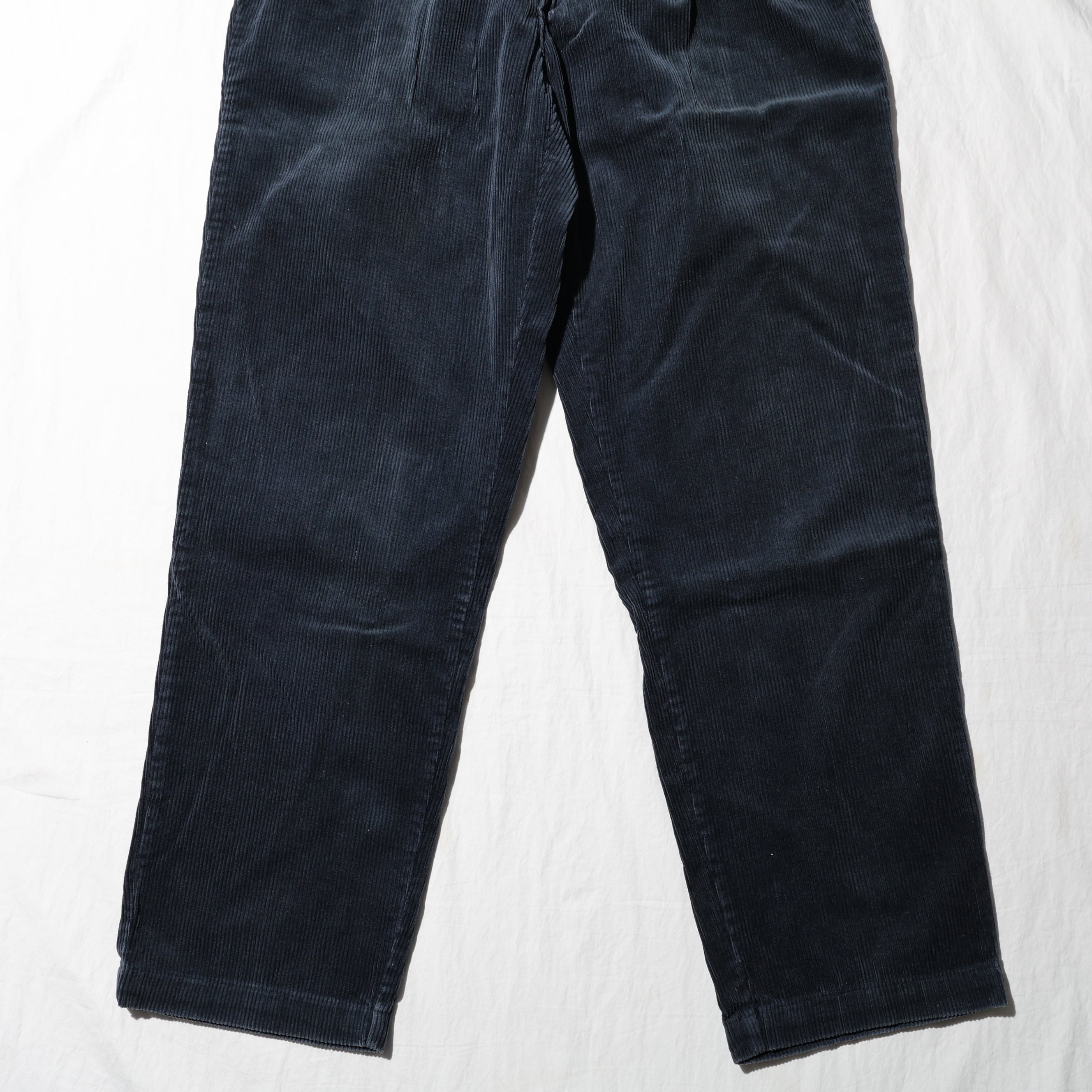 いずれも程よくテーパードが効いており、フロントのツータックや太畝のワイドコーズも相まってクラシックな佇まい。シャツやニットをタックインすればトラッドに、スウェットやフリースと合わせれば程よく抜けたカジュアルにも対応します。上品さと快適さを両立した秋冬の名品パンツです。