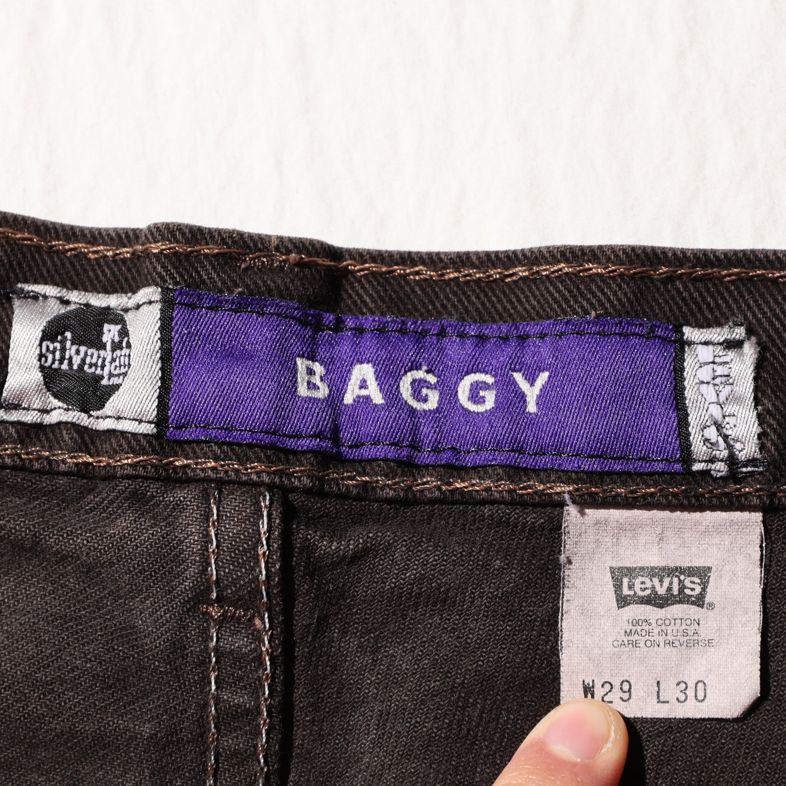 29×30 Levi’s Silvertab Baggy USA 97年 ブラウン後染め デニムパンツ リーバイス シルバータブ