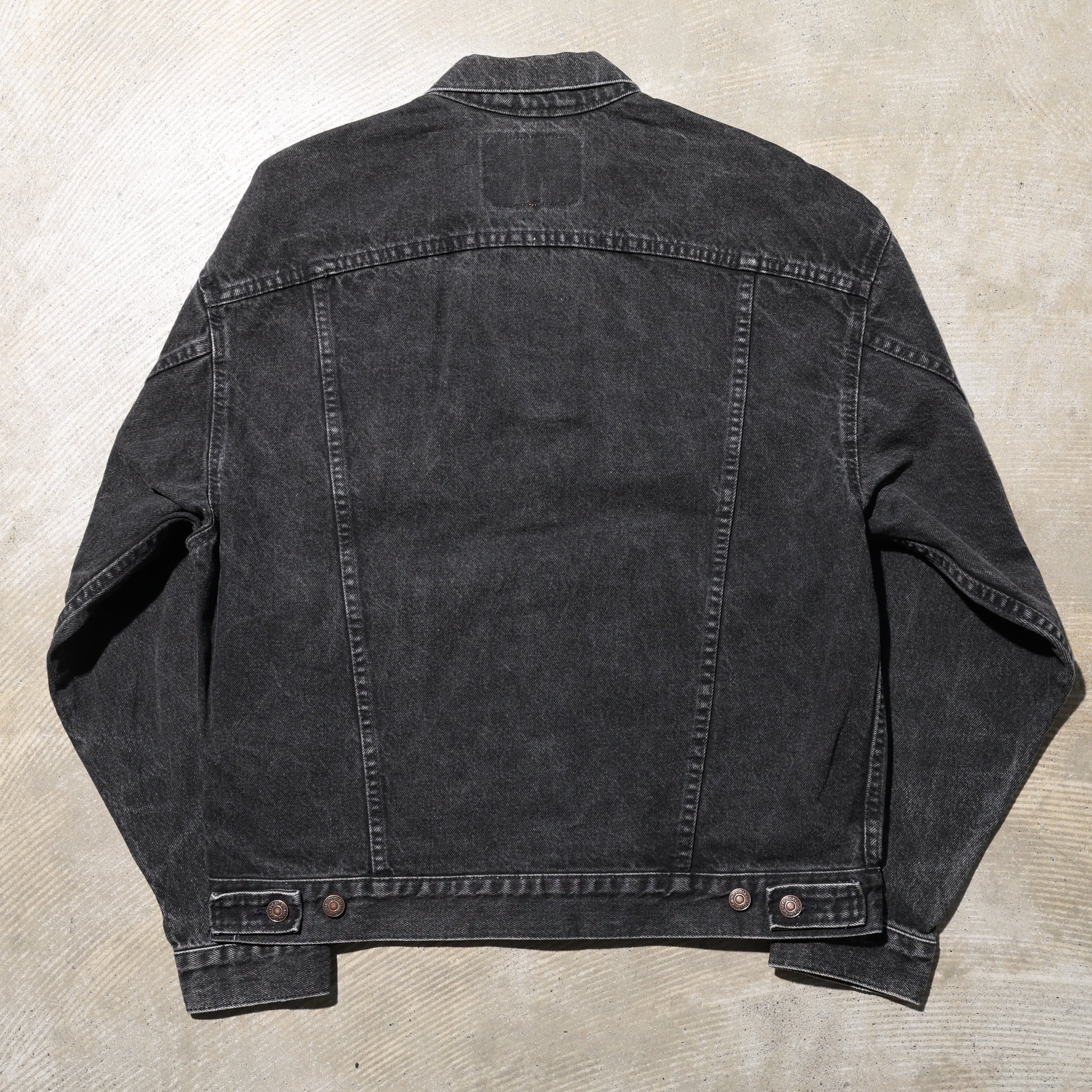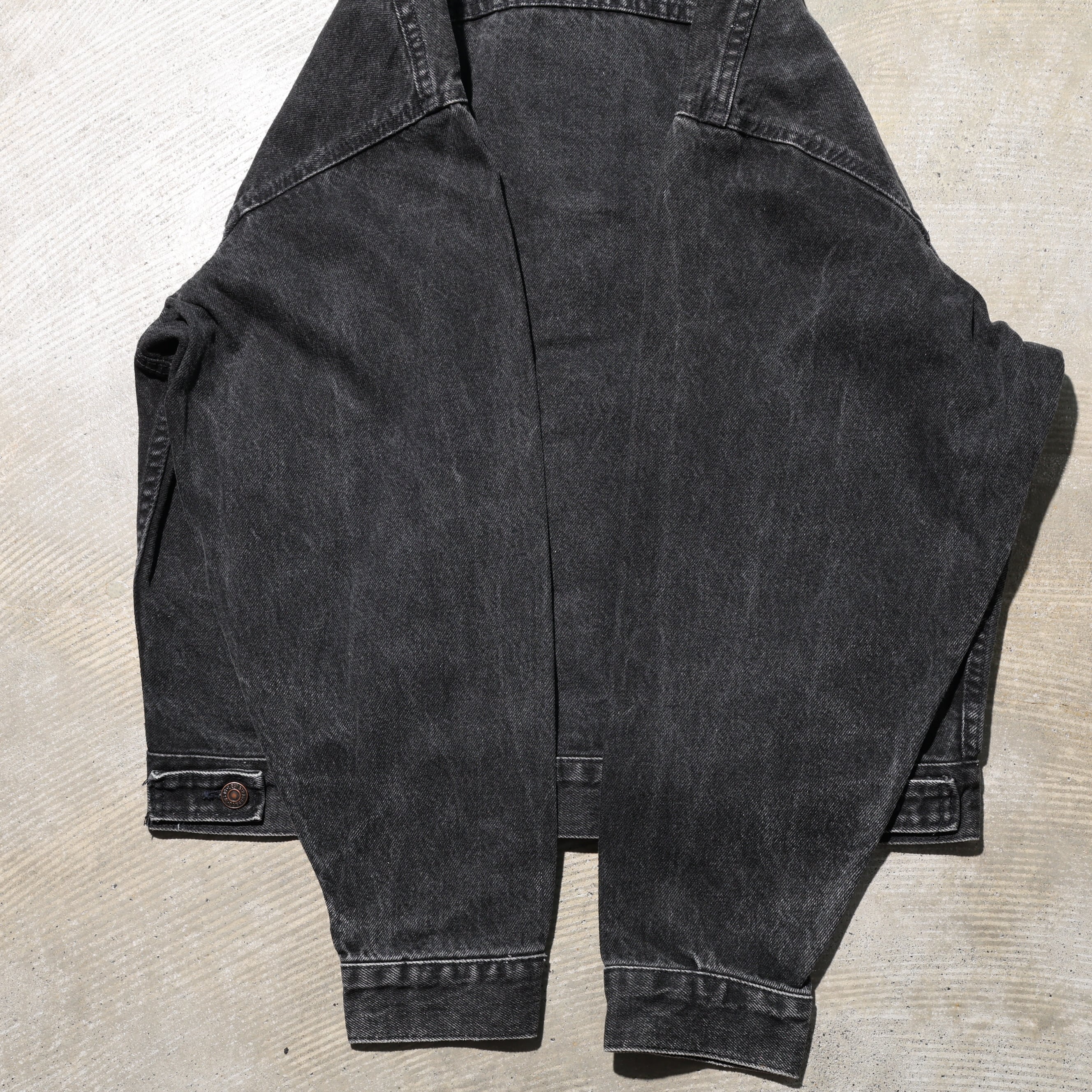 1980-2000年代にかけて製造されたサルファー染め(硫化染め)のブラックデニムジャケットです。