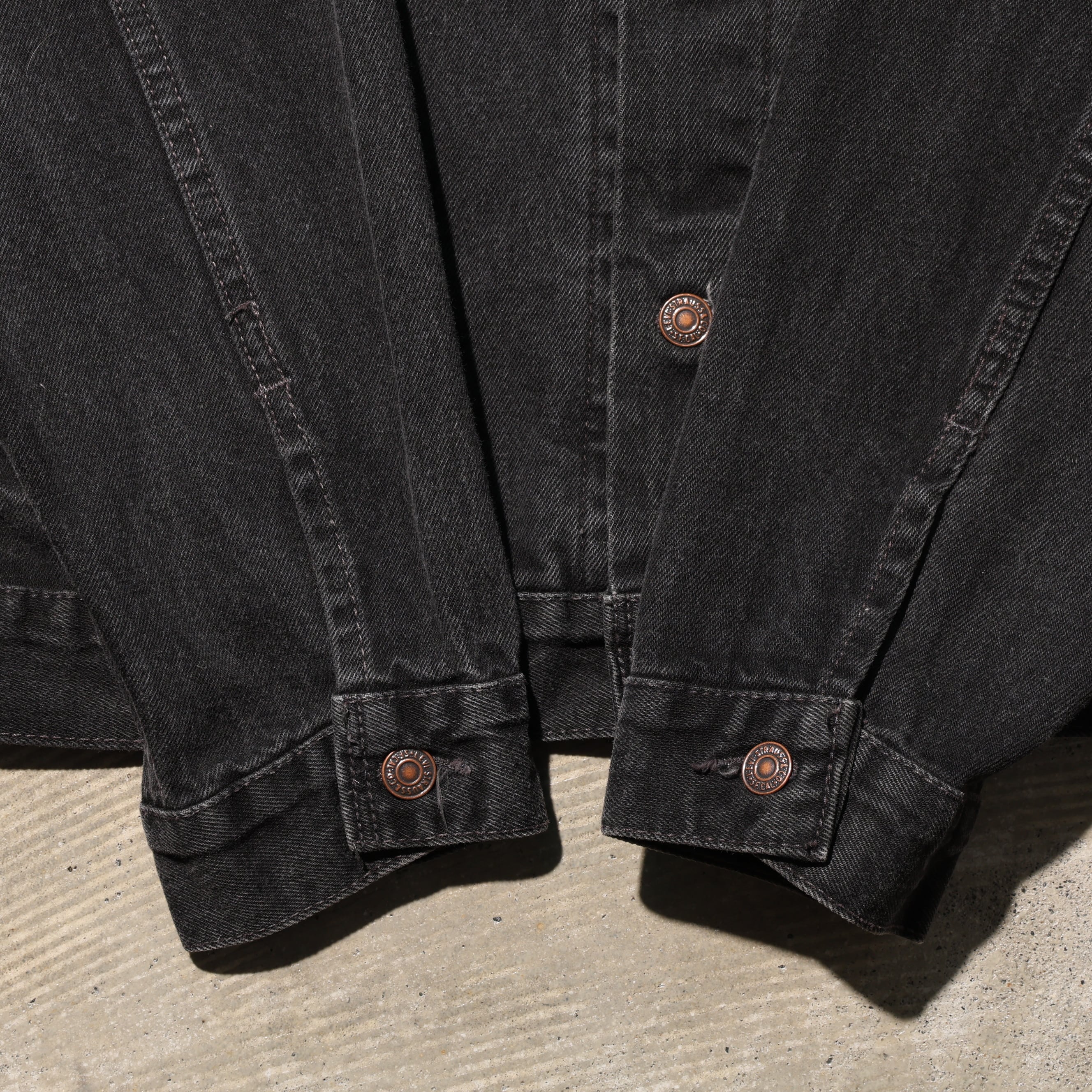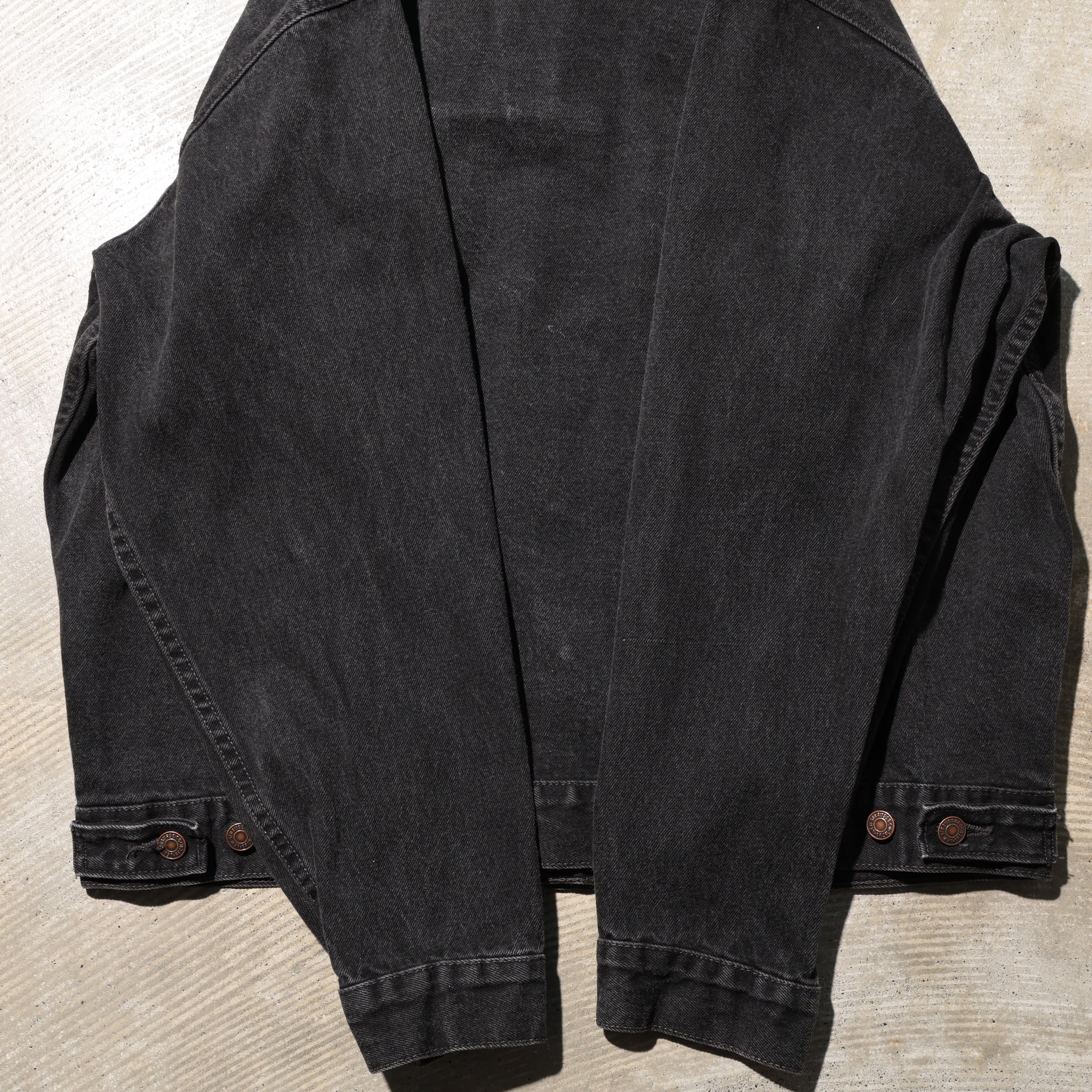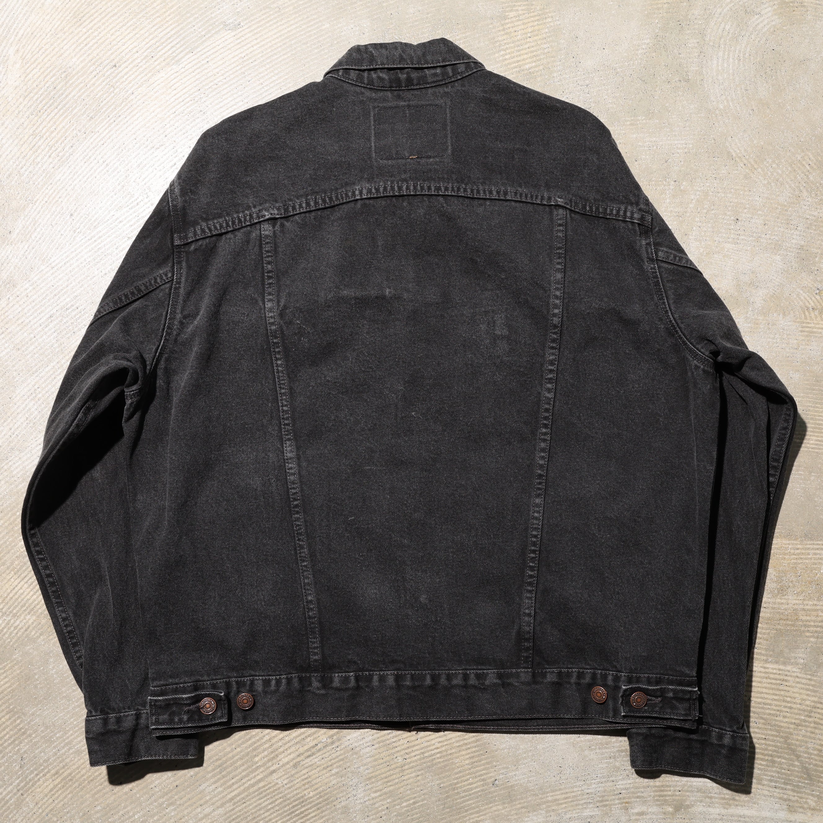 1980-2000年代にかけて製造されたサルファー染め(硫化染め)のブラックデニムジャケットです。