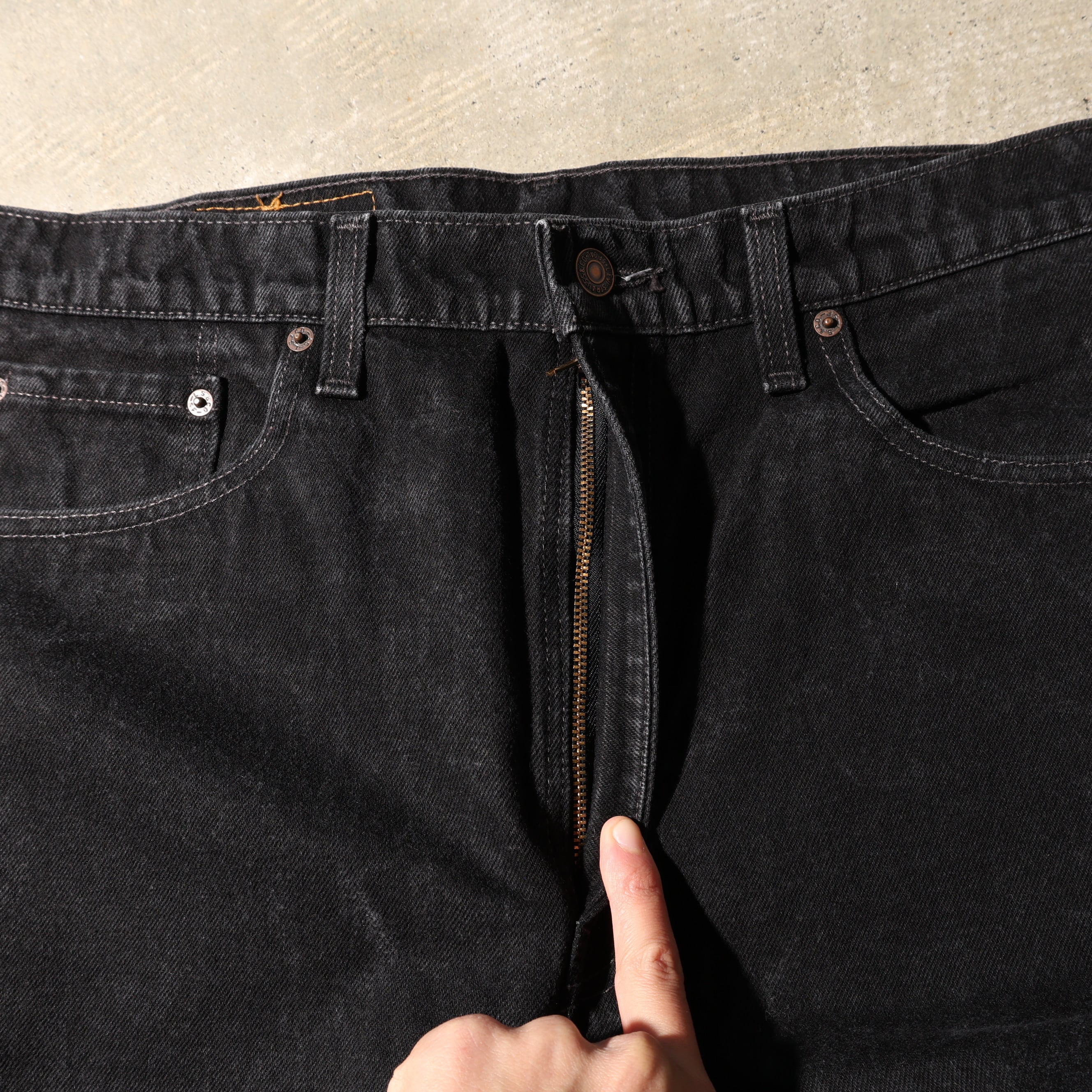 1980-2000年代にかけて製造されたサルファー染め(硫化染め)のブラックデニムです。