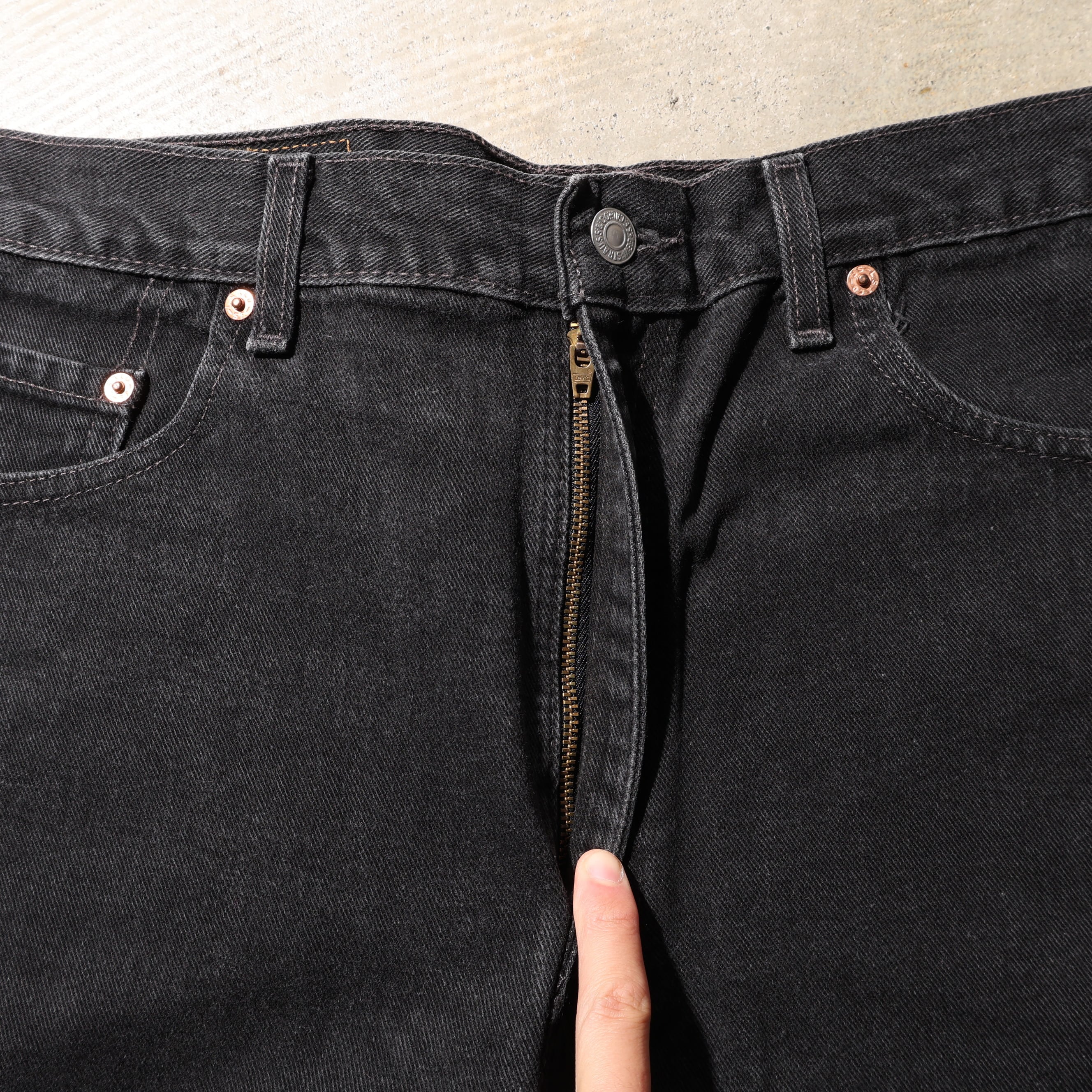 1980-2000年代にかけて製造されたサルファー染め(硫化染め)のブラックデニムです。