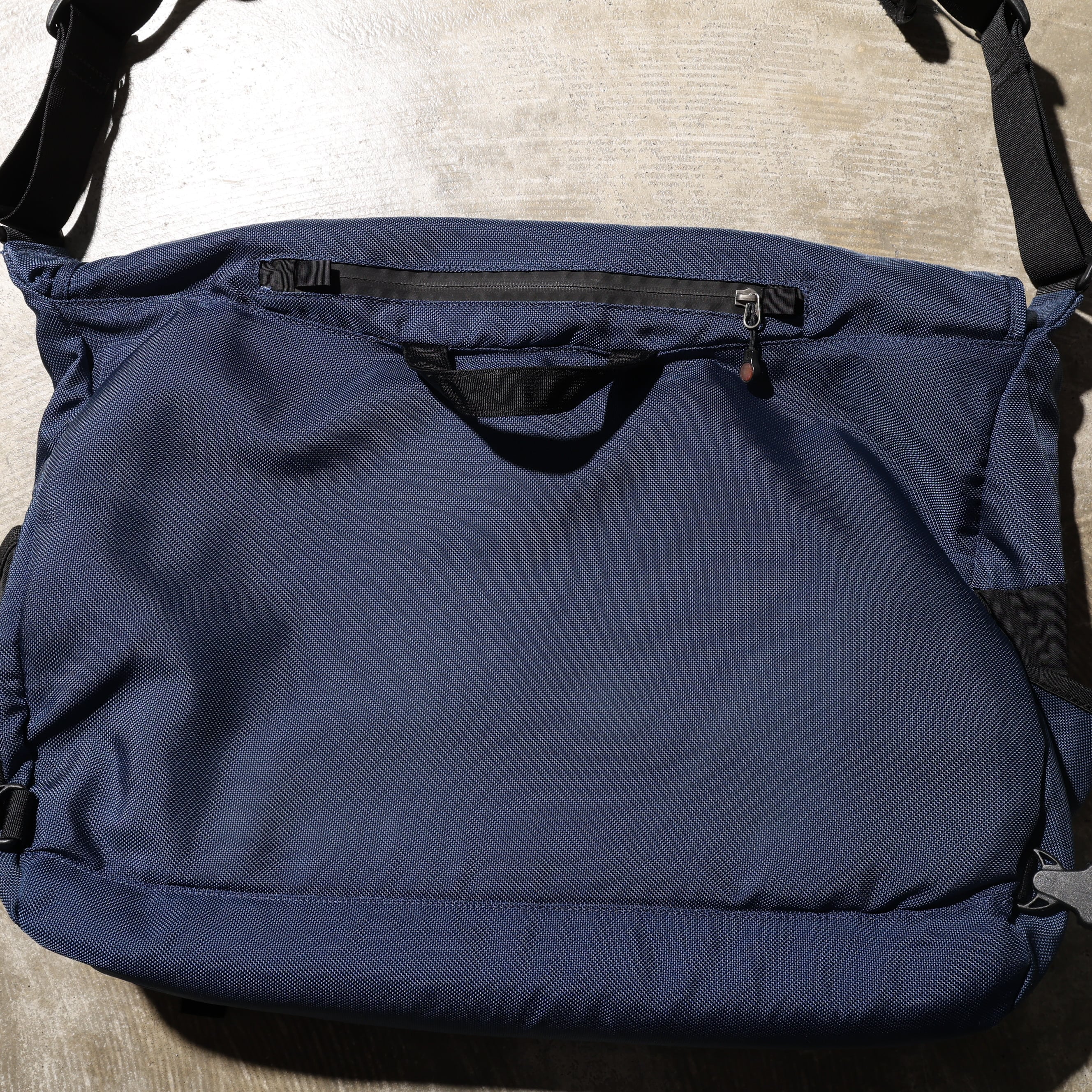 シンプルな構造のメッセンジャーバッグで、身体にフィットする斜め掛け仕様。ライディング時の安定感や、荷物への素早いアクセスを考慮した設計が特徴です。