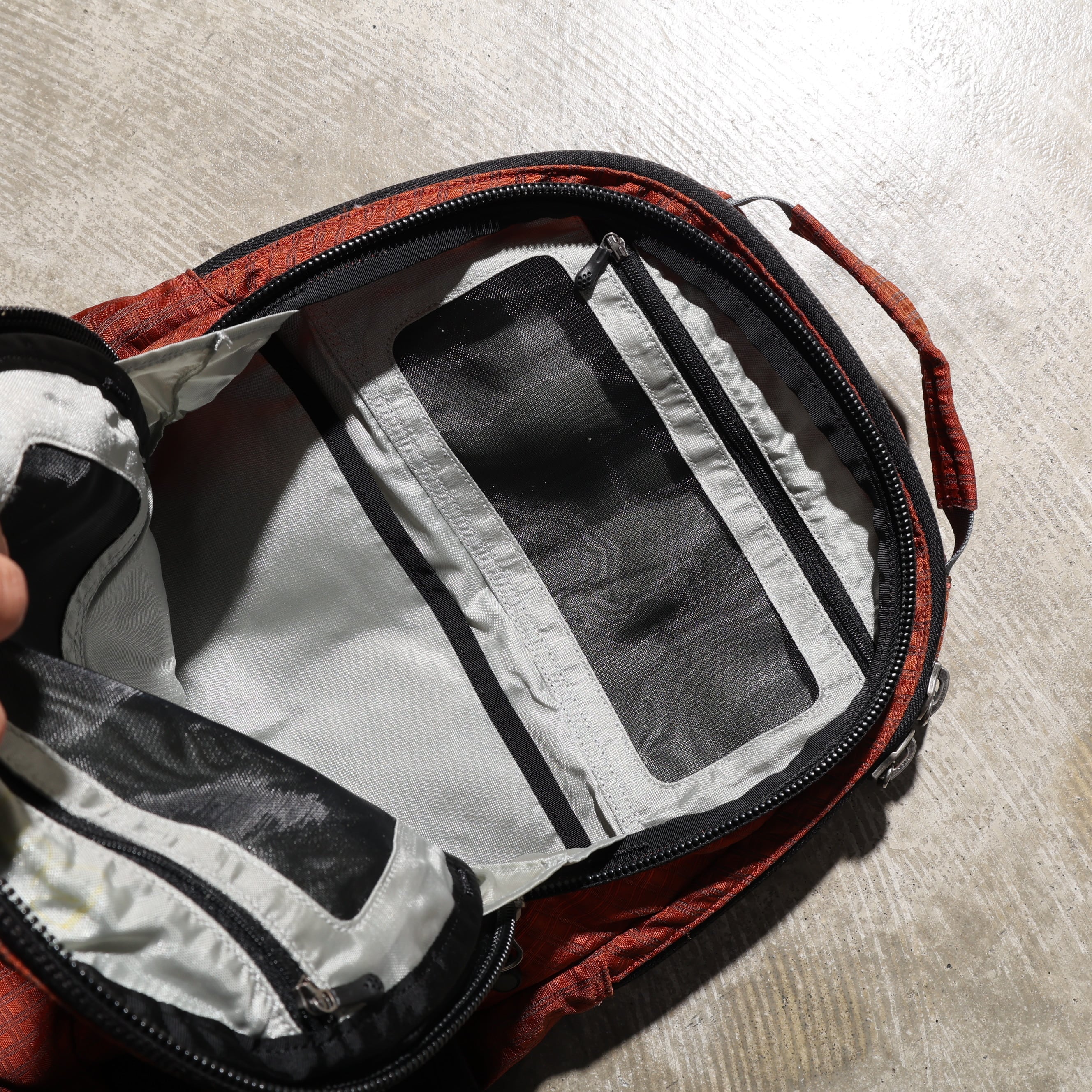 メインコンパートメントのPCポケットがカットされています。PCを持ち歩かない方には問題ないです。