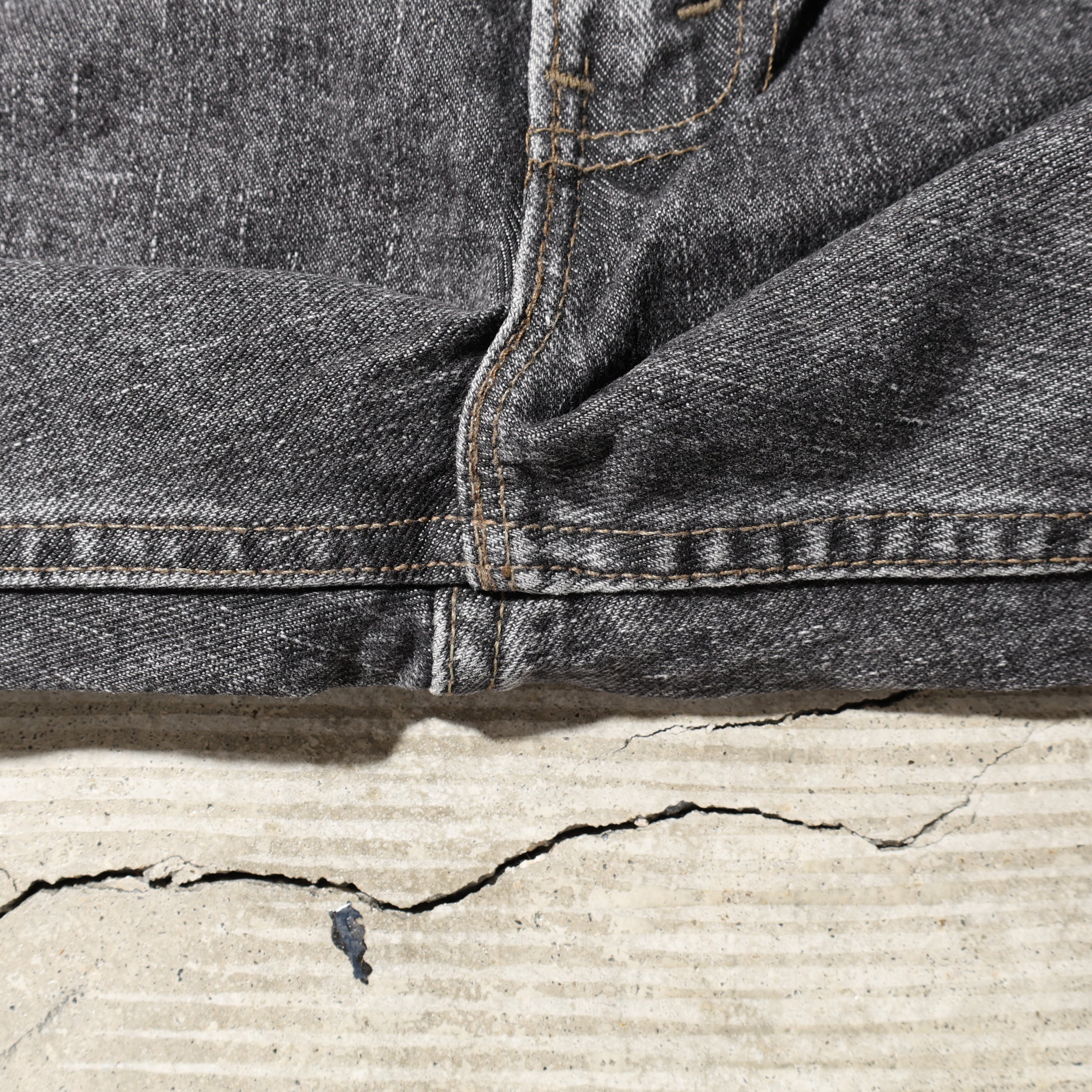 あらかじめ洗い加工がされている個体で、真っ黒というより少し履き込んだような雰囲気があります。