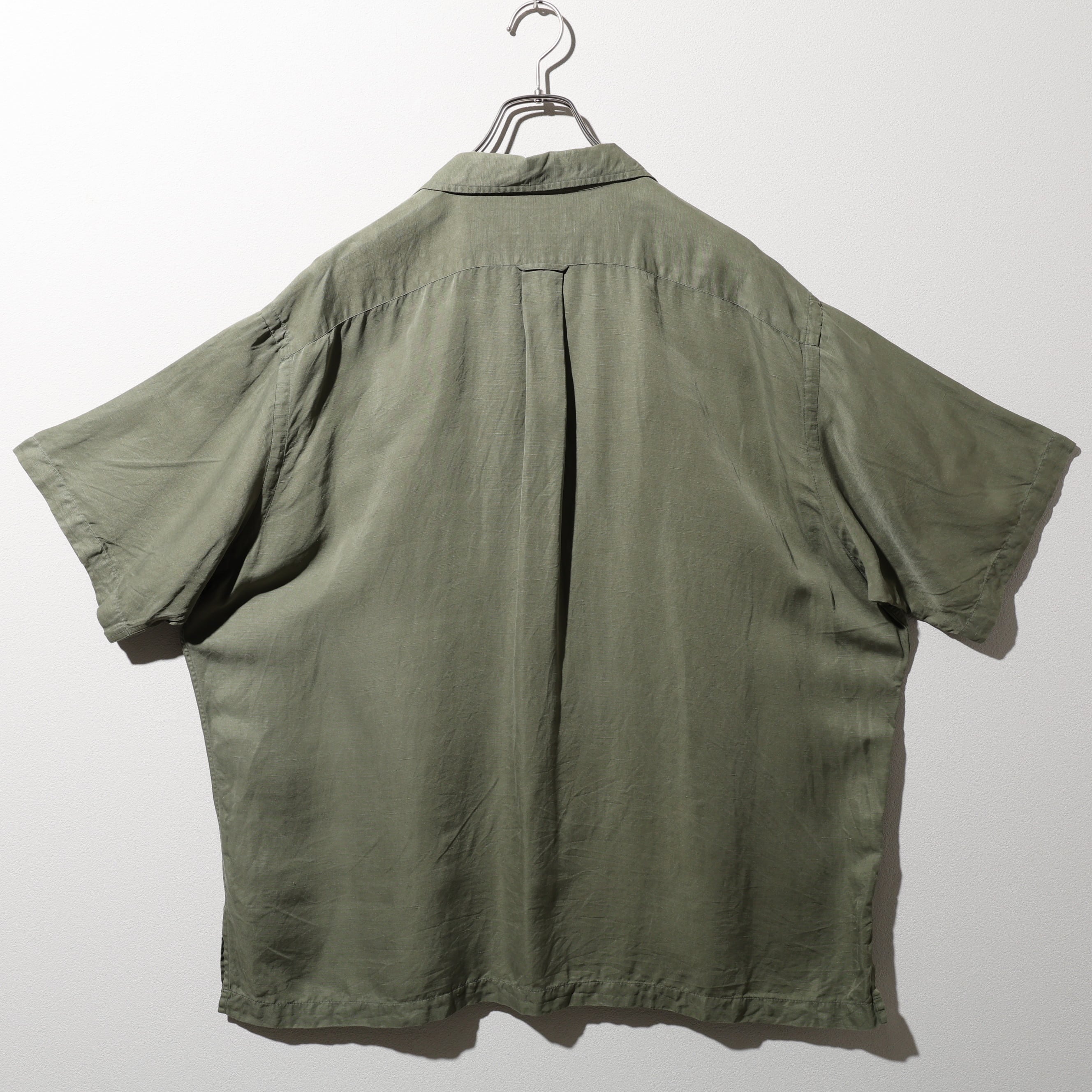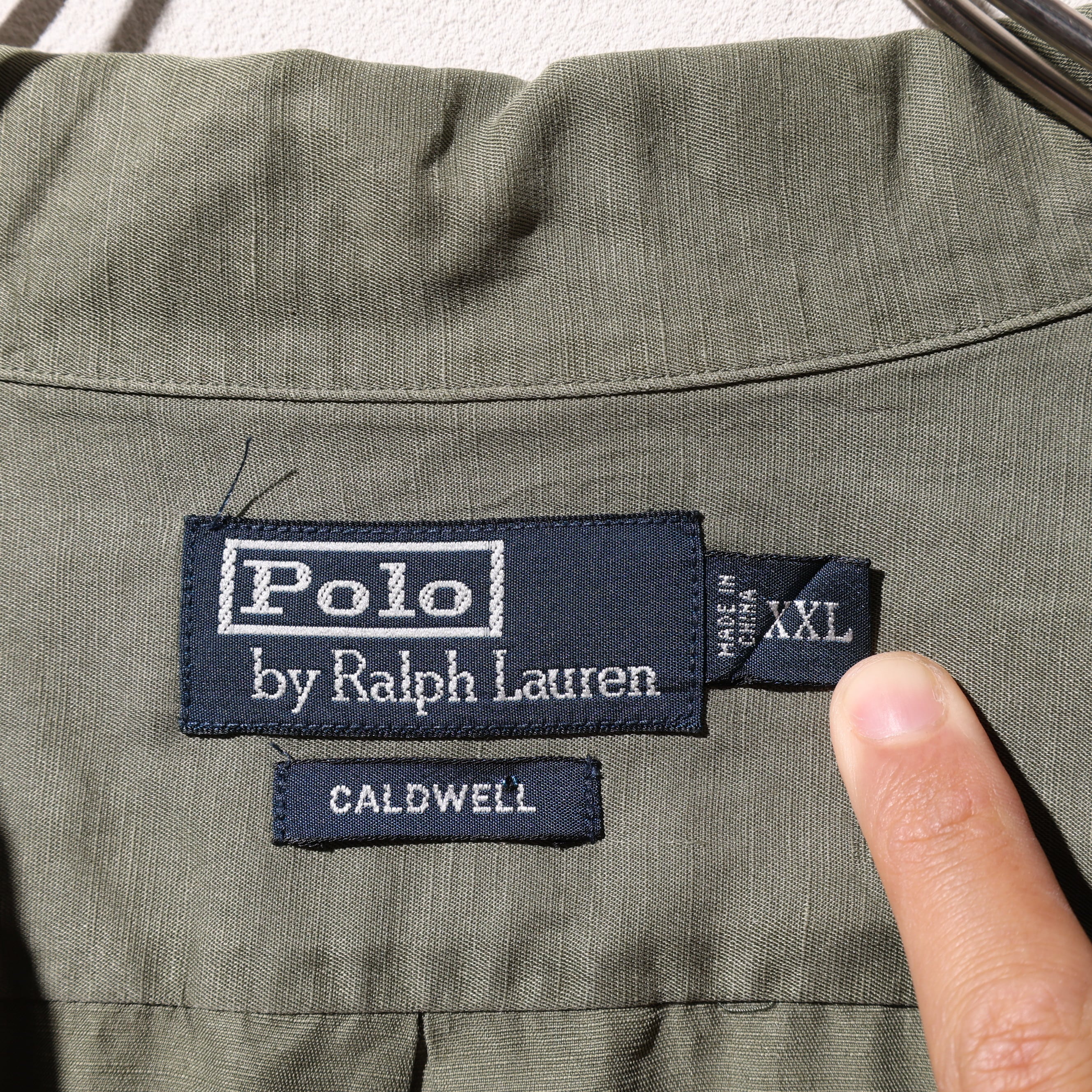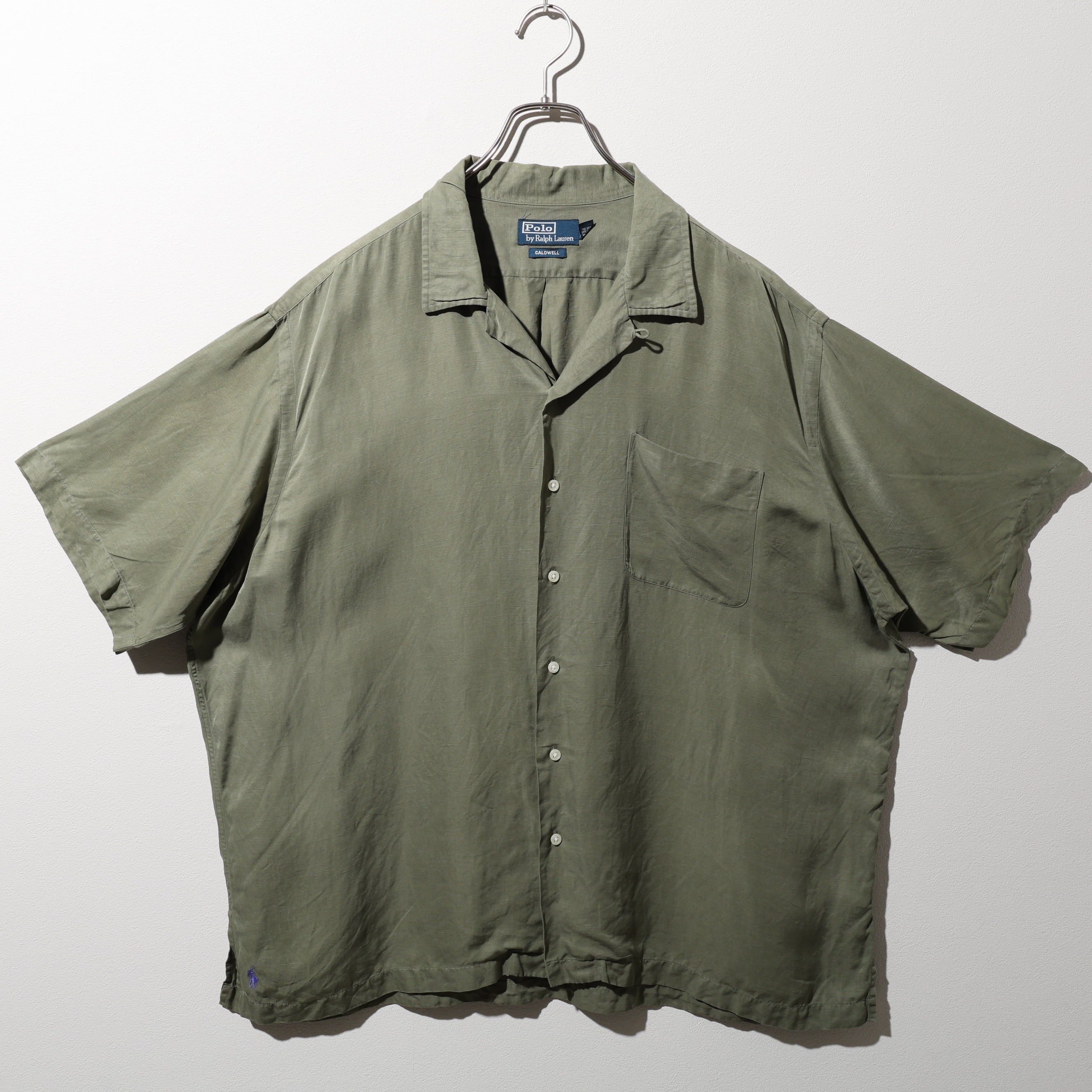 美品 2XL Caldwell オリーブグリーン シルクリネン Polo Ralph Lauren ポロラルフローレン 半袖開襟シャツ