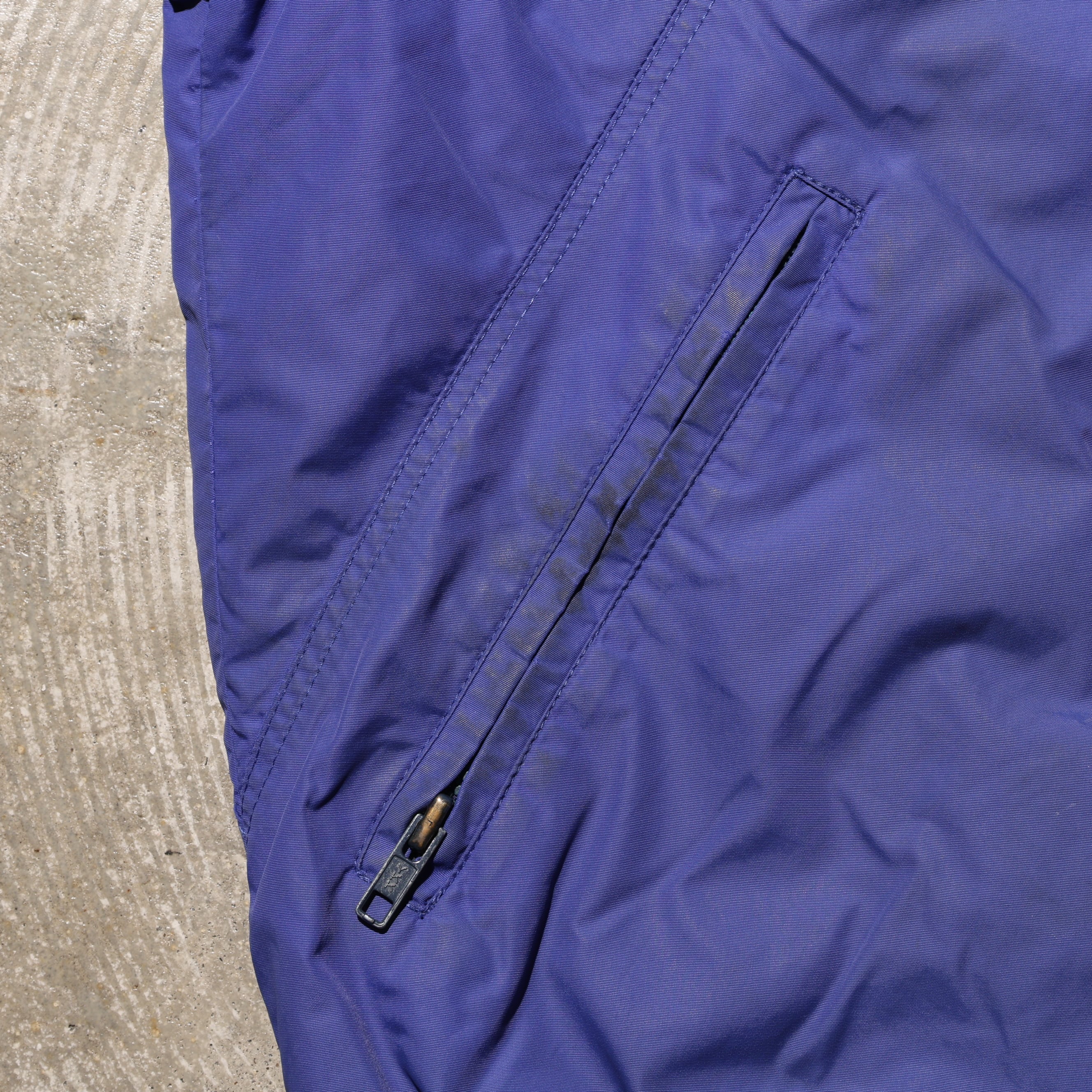 三角タグの初期個体で、フロントジップは最上部までは上がらない作りです。内側にウインドストッパーが付いているため機能的には大きく差はありません。