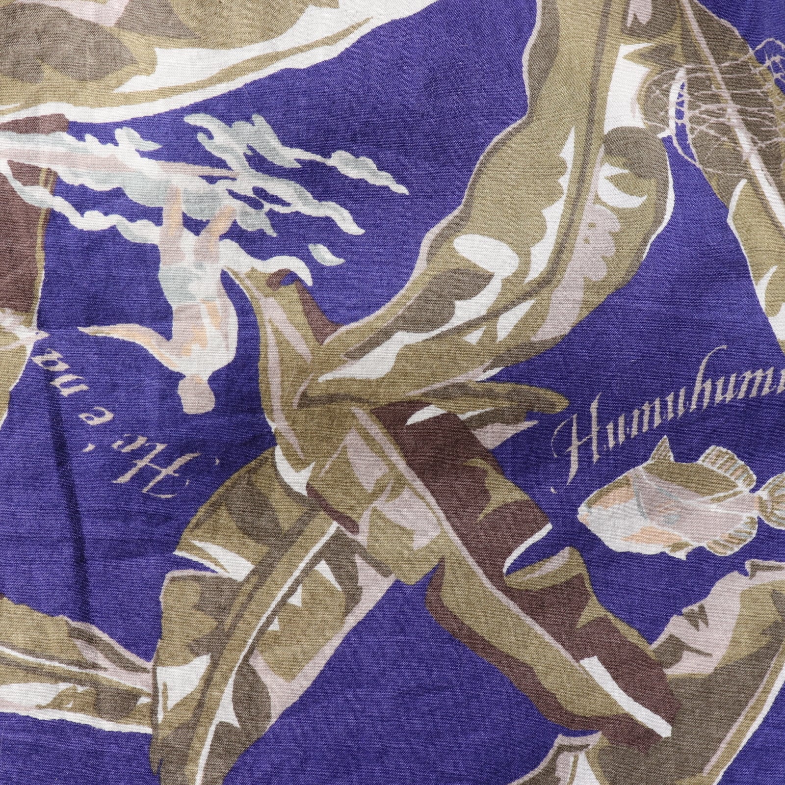 印象的なバイオレットカラーをベースにバナナリーフが描かれた夏らしい一枚。