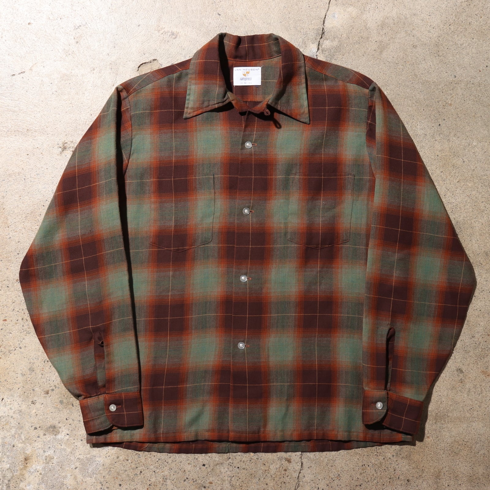 極美品 M 70s レーヨン オンブレチェックシャツ Van Heusen 長袖 ヴィンテージ vintage ヴァンヒューゼン
