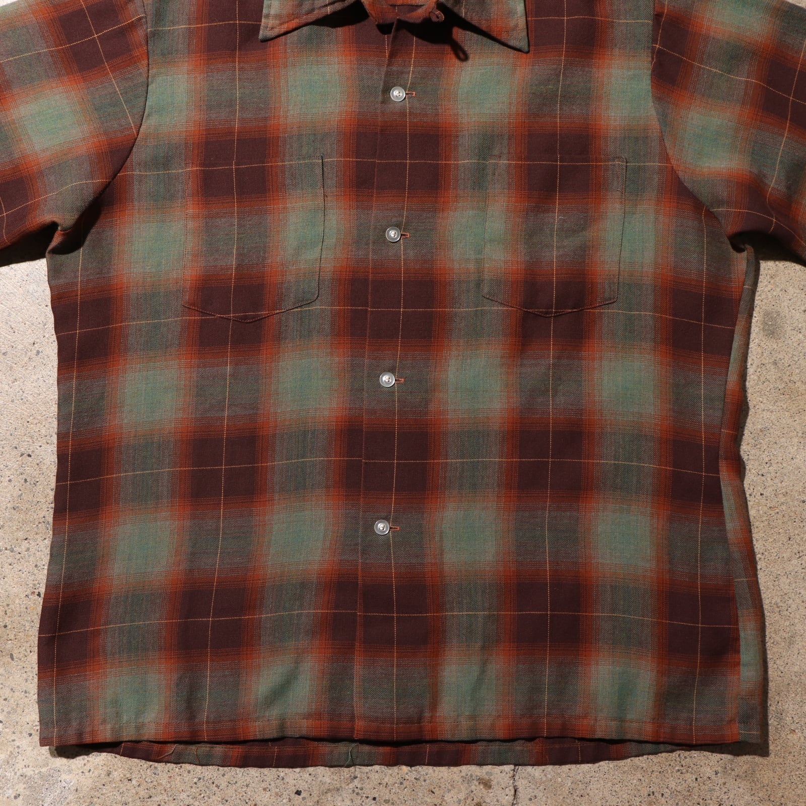 ヴィンテージシャツの中でも見かけることの少ないレーヨン混のオンブレシャツ。
