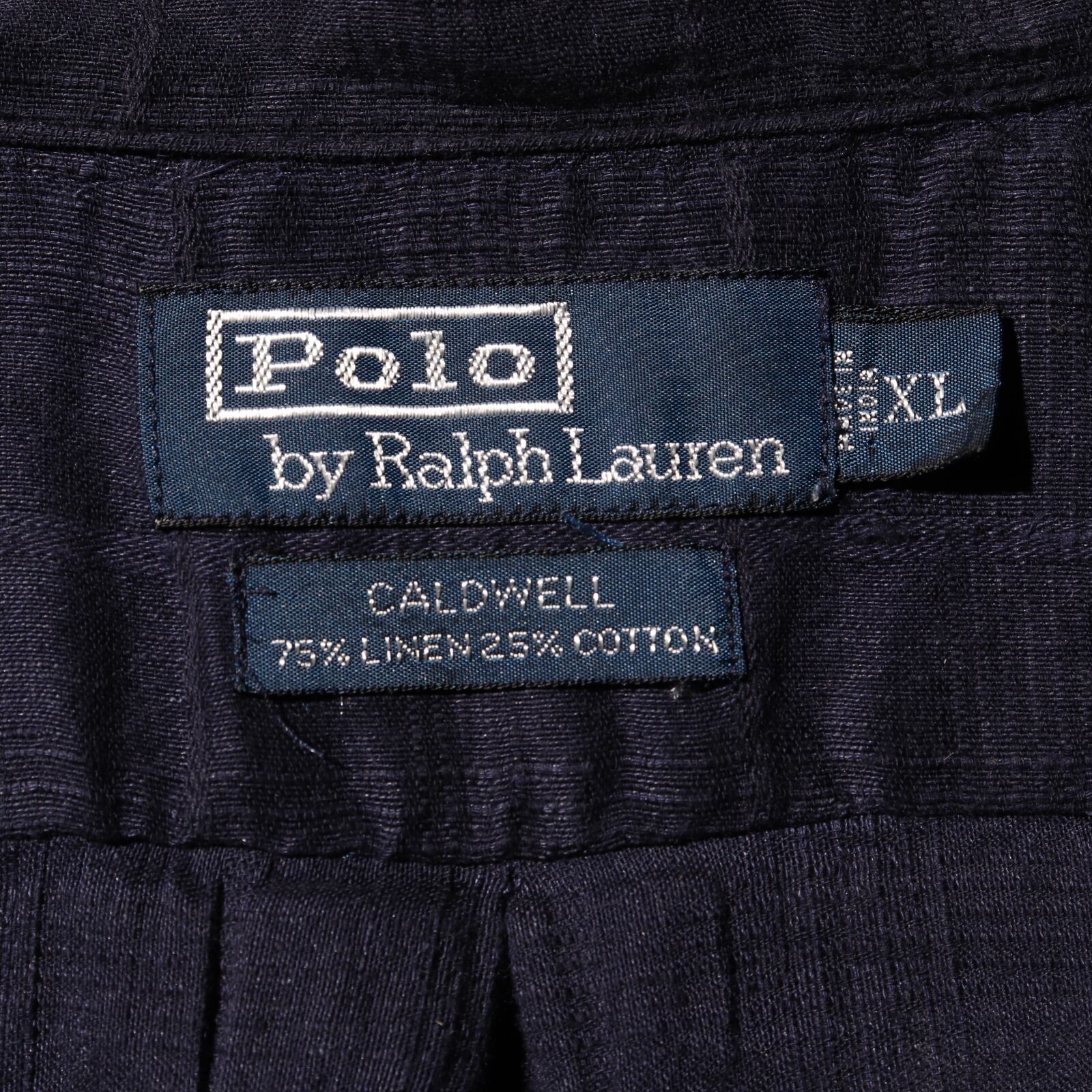 美品 XL 完全無地 チェック織柄 ネイビー コットンリネン Caldwell ポロラルフローレン シャツ