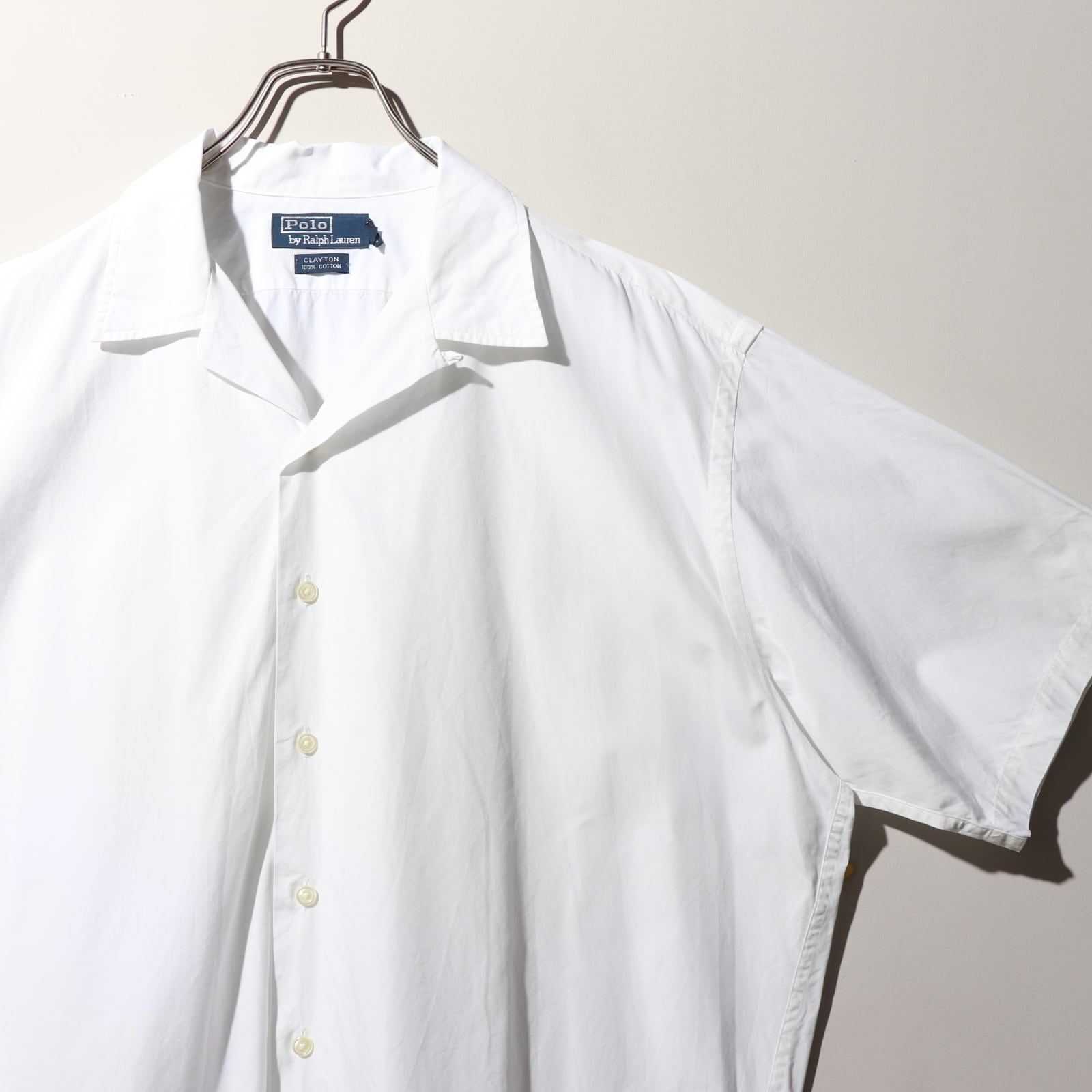 美品 L 完全無地 白 ポプリン Clayton ポロラルフローレン 半袖開襟シャツ ホワイト Polo Ralph Lauren