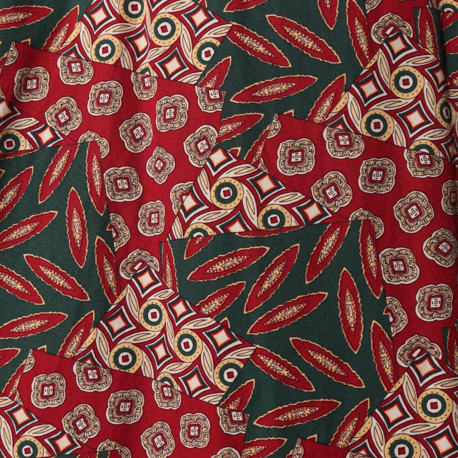 赤×緑という対称的な色でエグみのある総柄デザインのため、インパクト絶大。