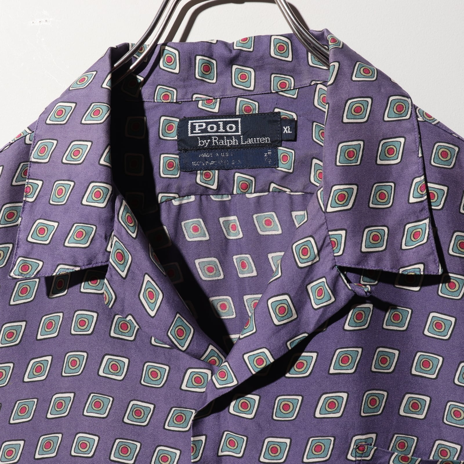 美品 XL 90s USA シルクシャツ ポロラルフローレン 紫 半袖開襟シャツ パープル Polo Ralph Lauren